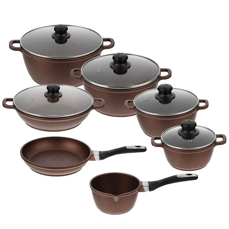 سرویس پخت و پز 7 پارچه زرساب مدل گرانیتا به همراه تابه وک هدیه