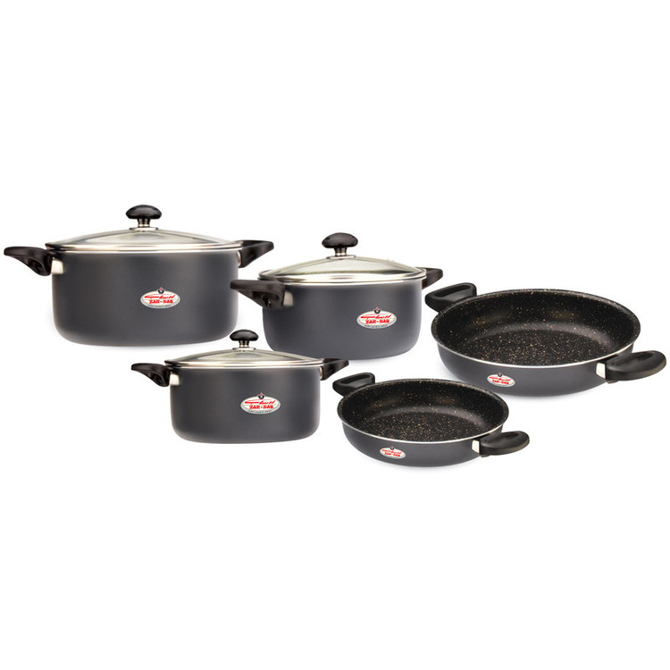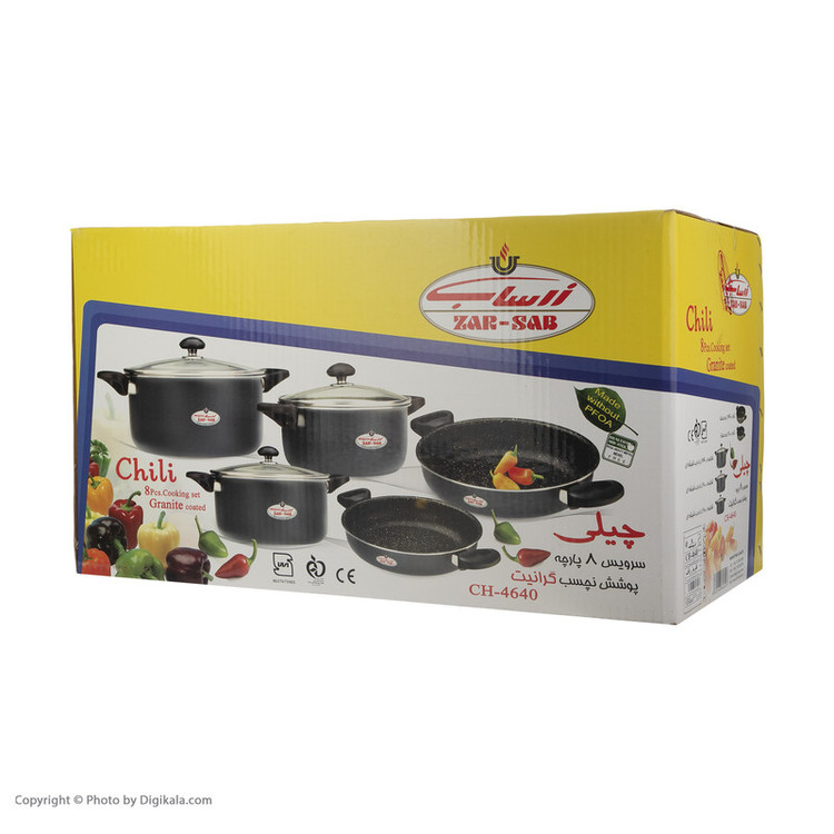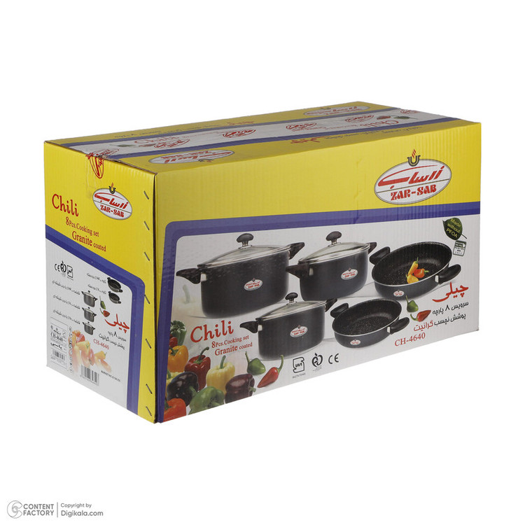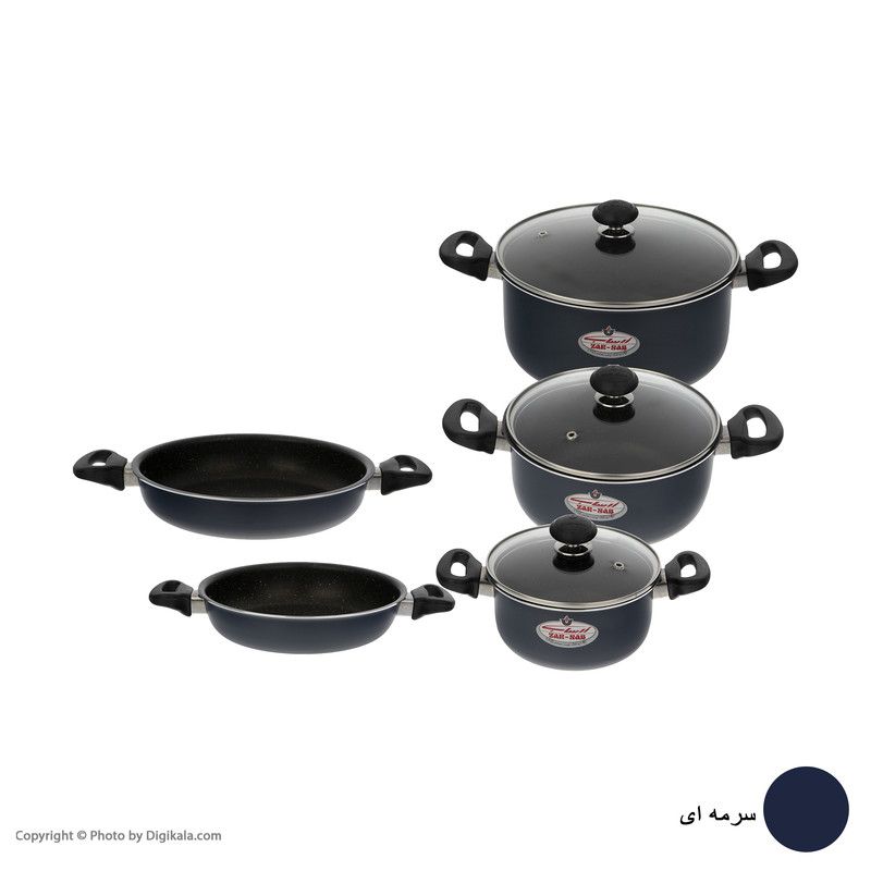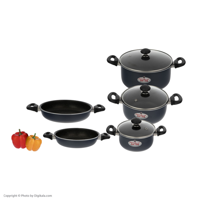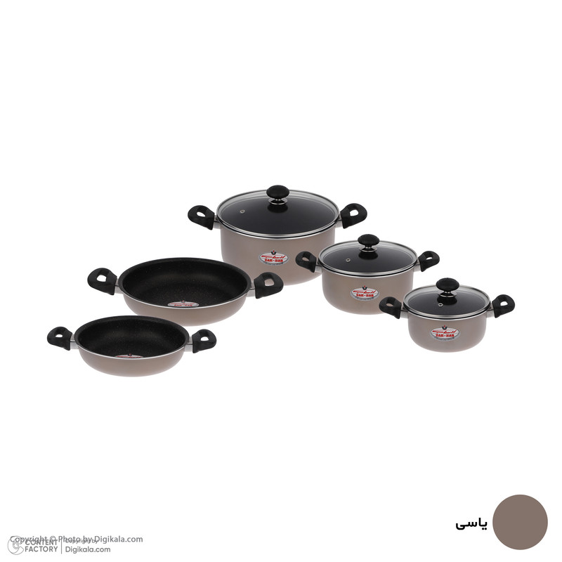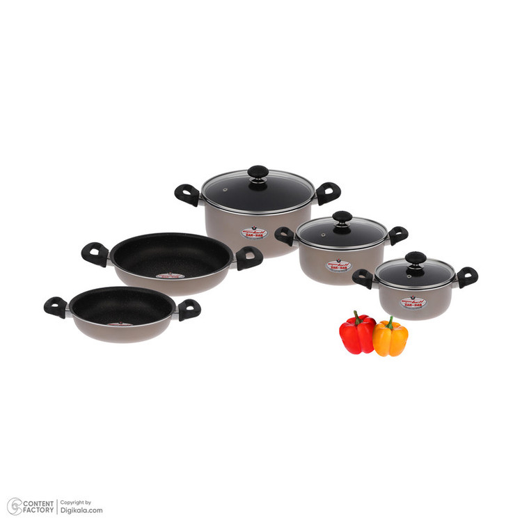 وزن ظروف: قابلمه سایز 16: 734 گرم - قابلمه سایز 20: 1059 گرم - قابلمه سایز 22: 1400 گرم - تابه سایز 24: 560 گرم - تابه سایز 20: 420 گرم