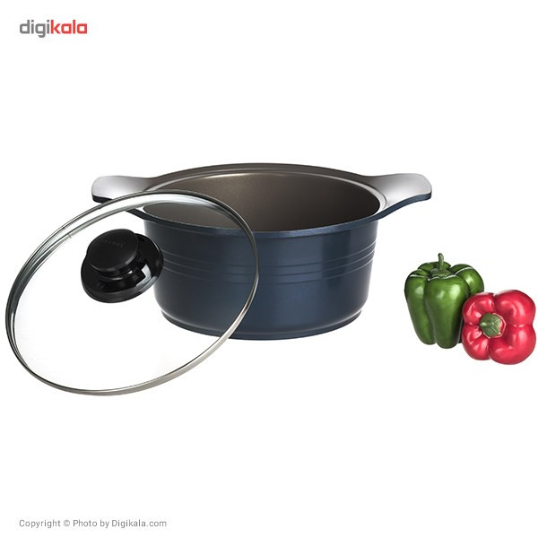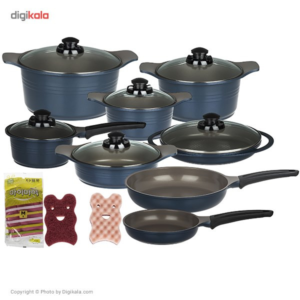 سرویسهای پختوپز یکی از ظروفی هستند که هر روز و به دفعات مورد استفاده قرار میگیرند به همین دلیل هم از لحاظ بهداشتی و هم کیفیت باید در سطح بالایی باشند. سرویس پختوپز 14 تکهی مدل «Natural Ceramic» برند «Roichen» از جنس آلومینیوم با روکش سرامیک است که مقاومت بالایی در برابر حرارت دارد. در این سرویس سه قابلمه به همراه در با قطر20، 24 و 28 سانتیمتر و یک شیرجوش با قطر 18 سانتیمتر وجود دارد که بر خلاف سایر شیرجوشهای سرویسها و یا حتی شیرجوشهای تکی در دارد تا از سر ریزشدن شیر جلوگیری کند. تابه از ظروفی است که در هر بار پختوپز حتما یکبار مورد استفاده قرار میگیرد به همین دلیل در این سرویس 4 عدد تابه در نظر گرفته شده است، دو تابه دردار با دو دستگیره به قطر 24 و 28 سانتیمتر و دو تابه تک دسته بدون در با قطر 20 و 28 سانتیمتر که همگی قابلیت انتقال گرما به صورت یکنواخت را به تمام ظرف و در نتیجه یکسان و همزمان پختن غذا را مهیا میکنند. درهای این سرویس همگی از پیرکس مقاوم هستند که قابی فلزی دورتادور آن وجود دارد و بر روی پیرکس سوراخهایی قابل تنظیم برای خروج بخار تعبیه شده است. به عنوان هدیه بر روی این سرویس دو عدد اسکاچ ابری و یک جفت دستکش قرار داده شده، با خرید این سرویس تا سالها حتی با زیاد شدن اعضای خانواده یا مهمانان نیازی به خرید سرویس پخت و پز دیگری نخواهد بود.