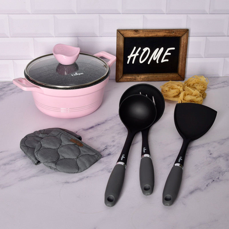 اقلام سرویس: قابلمه , تابه , سرویس کفگیر و ملاقه , دستگیره