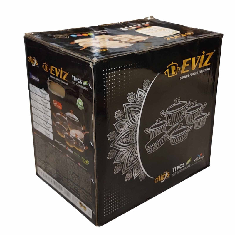 سرویس قابلمه الیپس 11 پارچه هست که دارای 4 قابلمه در سایز های :18-22-26-30 و یک تابه دودسته دربدار سایز 30 و یک تابه تک دسته در سایز 30 می باشد.این سرویس گرانیتی است و ضد خط و خش دارای سوپاپ خروج هوا و در رنگبندی های مختلف تولید شده است.