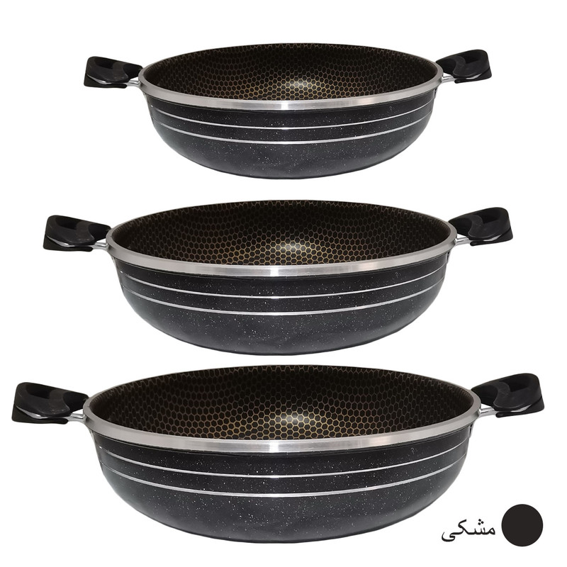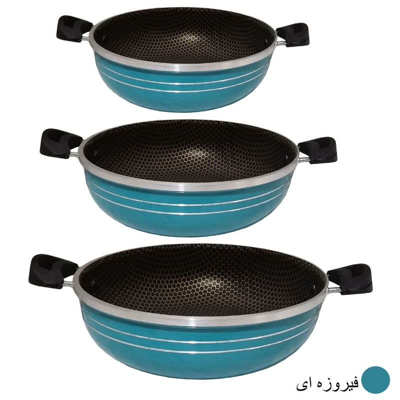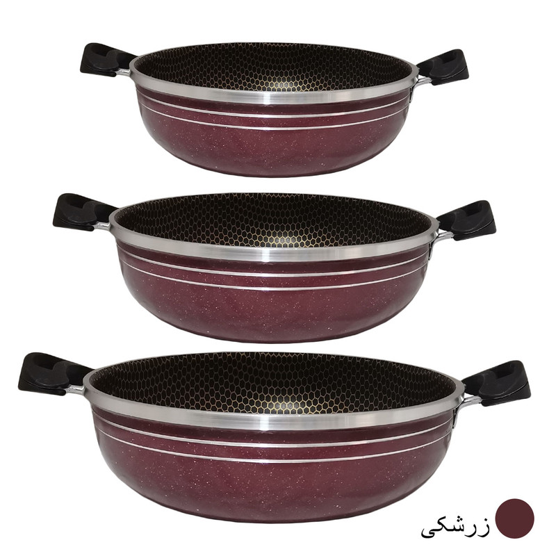 سرویس موجود شامل 3 تابه در سایزهای 20 و 24 و 28 می باشد (منظور از سایز قطر دهانه ی تابه می باشد.) ساخته شده از آلومینیوم با کیفیت بالا که با روکش گرانیتی نچسب پوشانده شده است. قطر ورق بدنه از ضخامت بالایی برخوردار است که طبخ انواع غذا را فراهم میکند. دارای لبه های برجسته (طرح چدن) می باشد که هم کیفیت محصول را بالا برده و هم از نظر ظاهری به آن جلوه داده است.
