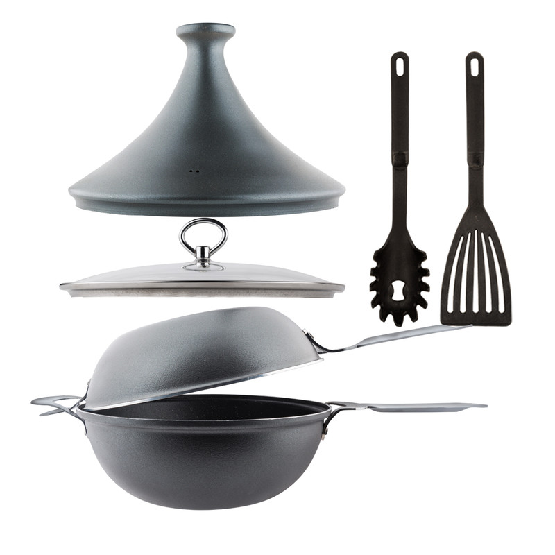 و لیدوما با طراحی BBWok نوآوری جذابی را رقم زده است که شما دو وک که کارکرد تابه ، قابلمه و وک را دارد و همچنین میتواند به صورت تابه دو طرفه نیز استفاده شود را در این سرویس داشته باشید که تمامی مشکلات تابه های رژیمی مرسوم در این محصول برطرف گردیده است و برای بالا بردن کیفیت و همچنین کارایی این محصول درب مراکشی نیز در این سرویس قرار داده شده است.