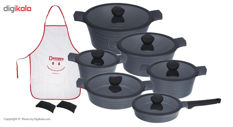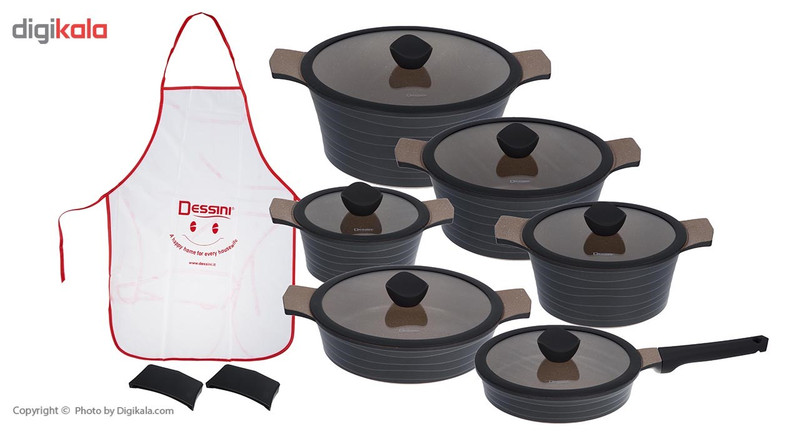 سرویس 17 پارچه گرانیتی دسینی از سبک ترین و نچسب ترین قابلمه و تابه تشکیل شده است ، تنوع سایز های مختلف قابلمه انتخاب را برای سر آشپز راحت کرده که بتواند قابمه با ظرفیت مورد نیاز خود را استفاده کند.شکل فیزیکی قابلمه ها نیز طوری طراحی شده که شستشو راحت تر و سریع تر انجام گیرد.دربهای قابلمه و تابه ها پیرکس می باشد و دور هر در از رینگهای سیلیکونی نسوز ثابت شده است.