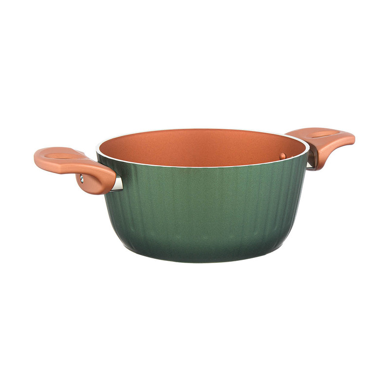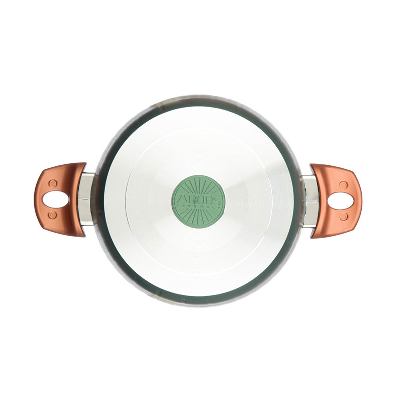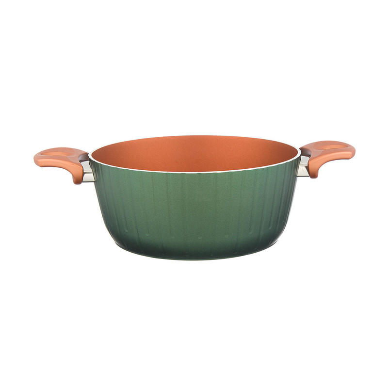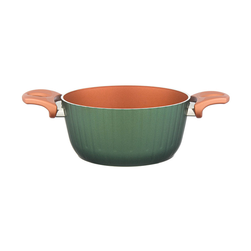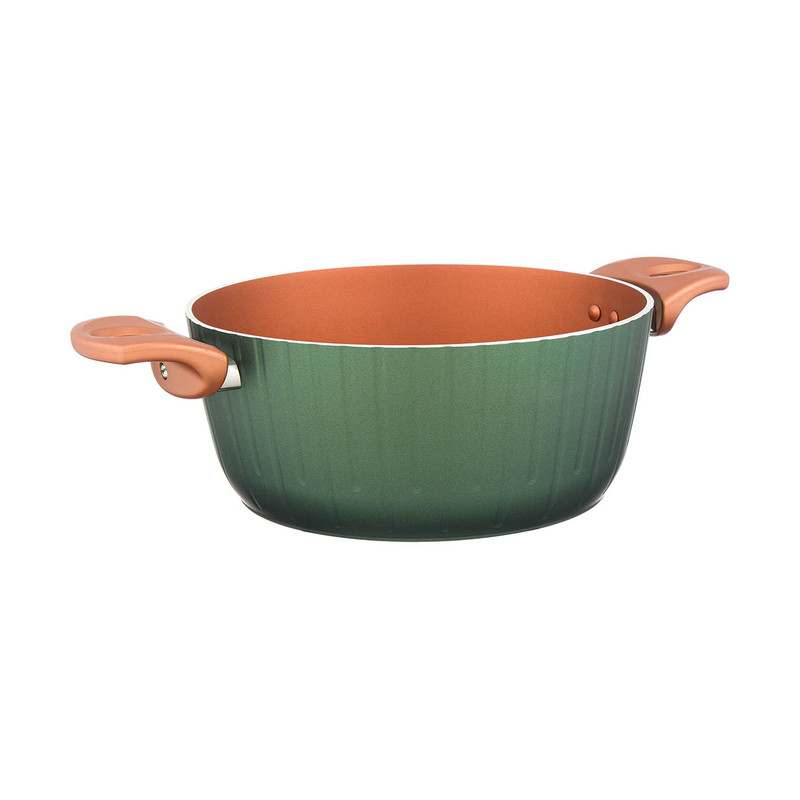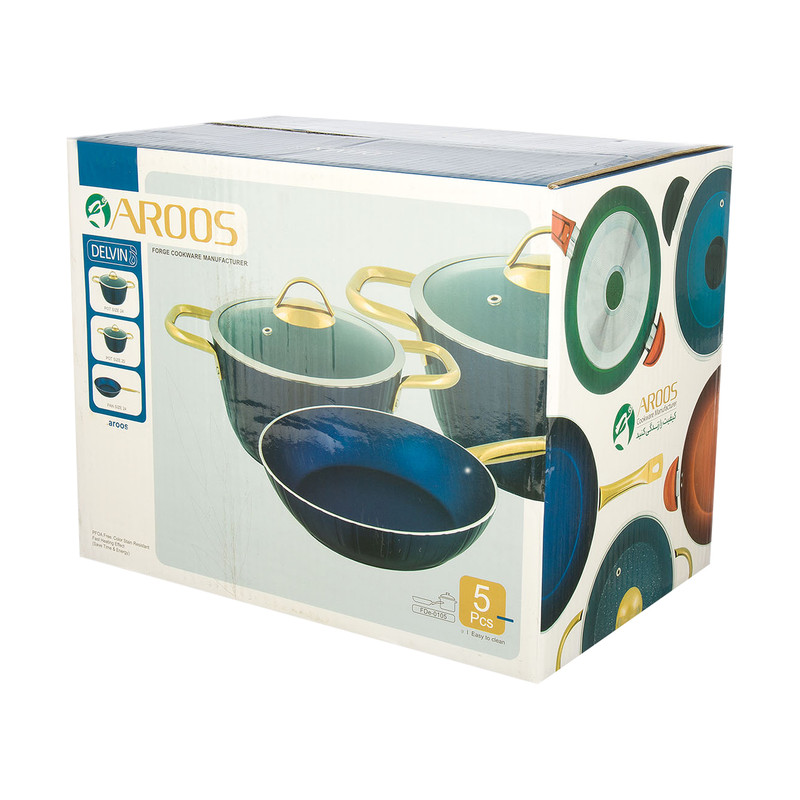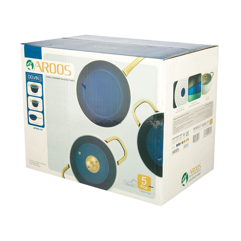 سرویس پخت و پز 5 پارچه عروس مدل دلوین شامل قابلمه های سایز 20 و 24 به همراه تابه تکدسته سایز 24 می باشد ، آلیاژ بدنه این محصول از آلومینیوم سخت به اصطلاح فورج ساخته شده و پوشش داخلی آن نیز نچسب است