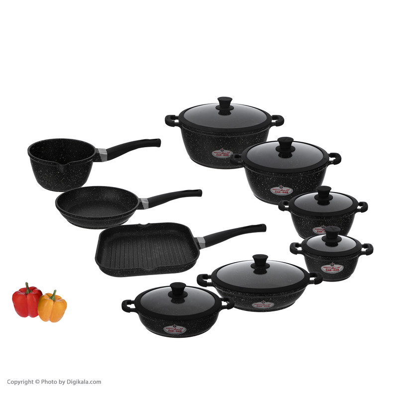 در این سرویس با نام سرویس پخت و پز 15 پارچه زرساب مدل ماربلینا کد MB7780، لوازمی قرار داده شده است تا بتوان در آشپزخانه با همین ابزارها، به آشپزی مشغول شد و نیاز خود را برطرف کنیم. جنس بدنه از آلومینیوم ساخته شده و بدنه آلومینیومی باعث شده است تا وزن ظروف سبک باشد و از طرف دیگر انتقال حرارت از شعله به درون ظرف، به شکل بهتری انجام شود. همچنین روکش داخلی ظروف از نوع گرانیت 5 لایه است، این ویژگی باعث شده تا درون ظرف نچسب بوده و دغدغهی شستوشوی ظروف تابه و قابلمه را بعد از هربار آشپزی یا سرخ کردن نداشته باشید. ظروفی مثل شیرجوش، انواع تابه و قابلمه، همگی در کنار هم برای استفاده در آشپزخانه کاملا مناسب خواهند بود و نیاز شما را برای هر مدل پخت و پز، برطرف خواهند کرد. شرکت صنعتی زرساب در سال 1361 با هدف توليد ظروف آشپزخانه نچسب با کيفيت جهت صادرات و مصارف داخل کشور با بهره گيری از کليه استانداردهای مرتبط داخلی و بين المللی با استفاده از بهترين مواد اوليه اروپايی مانند P.T.F.E، پودر رنگ و ... تاسيس گردید.