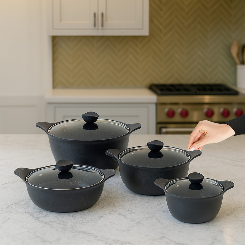 قابلمه سایز ۲۰: 1045 گرم، قابلمه سایز ۲۴: 1500گرم، قابلمه سایز ۲۸: 1935 گرم، تابه سایز ۲۸: 1565 گرم
