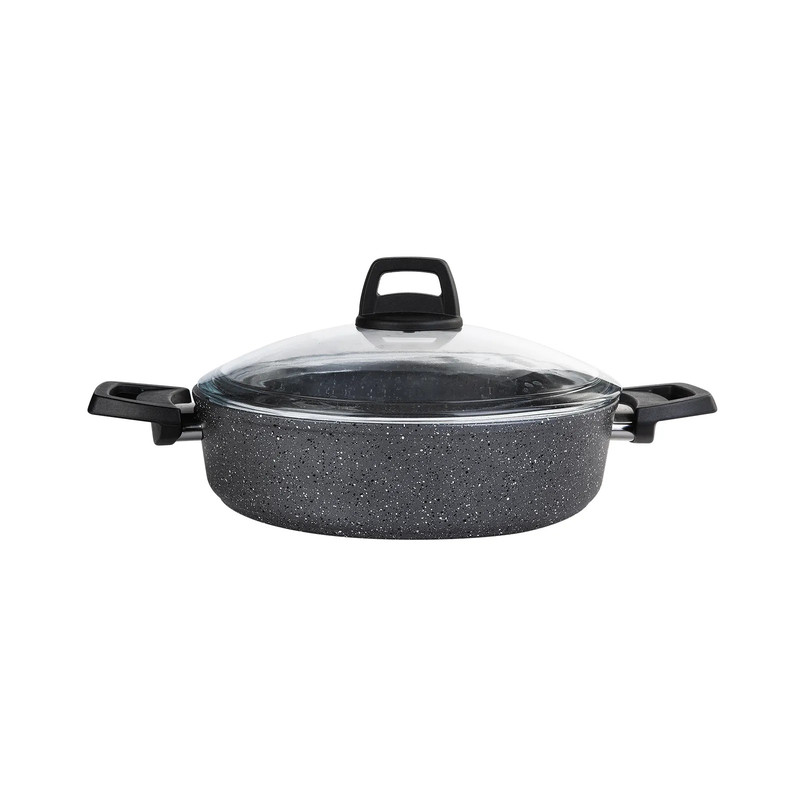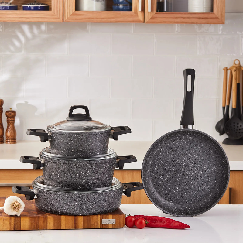 گرانیت استفاده شده در این محصول در سوئیس تولید شده و دارای کیفیت و دوام بسیار بالایی است.یک محصول با تکنولوژی پیشرفته است.مواد مورد استفاده در تولید دارای گواهی هستند و هیچ ماده مضری ندارند. سطح آن در برابر خراش بسیار مقاوم است.به دلیل حداکثر ویژگی نچسب بودن و نسوز بودن ضد خط و خش بوده و به راحتی تمیز می شود و در مقایسه با معادل های آن تا 7 برابر در برابر خراش مقاوم است.