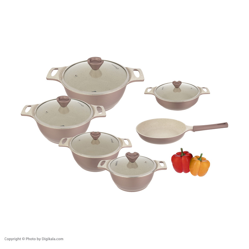 بدنه آلومینیومی در ظروف پخت و پز باعث شده است تا وزن ظروف سبک باشد و همچنین انتقال حرارت از اجاق گاز به شکل بهتری انجام شود. این انتقال حرارت باعث پخت بهتر غذا و همچنین یکنواختی در پخت غذا میشود. یکی از ویژگیهای مهم سرویس پخت و پز 14 پارچه دسینی مدل ونتو این است که روکش داخلی ظروف از نوع گرانیت بوده و این ویژگی باعث شده تا درون ظرف نچسب شود و دغدغهی شستوشوی ظروف تابه و قابلمه را بعد از هر بار آشپزی یا سرخ کردن از بین رود. همانطور که میدانید ظروفی که نچسب هستند دارای شستوشوی بهتر و آسانتری نسبت به ظروف ساده هستند و همینطور اگر قصد سرخ کردن یا پخت غذا داشته باشید، غذا به بدنه نچسبیده و باعث میشود آسیب به شکل غذا وارد نشود. ظروفی مثل تابه دسته بلند، انواع تابه و قابلمه، همگی در کنار هم برای استفاده در آشپزخانه خانه کاملا مناسب خواهند بود و نیاز شما را برای هرگونه آشپزی برطرف خواهند کرد.