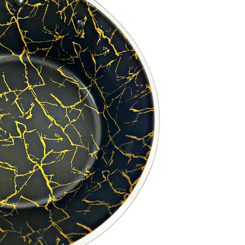 سرویس پخت و پز ۷ پارچه طرح گلدونی مدل ماربل شامل ۳ عدد قابلمه در سایز های ۲۰ و ۲۴ و ۲۸ به همراه درب و ۱ عدد تابه در سایز ۲۸ می باشد که از مرغوب ترین مواد اولیه تهیه و تولید شده است جنس پوشش داخلی ظروف از گرانیت سه لایه کاملا نچسب می باشد.