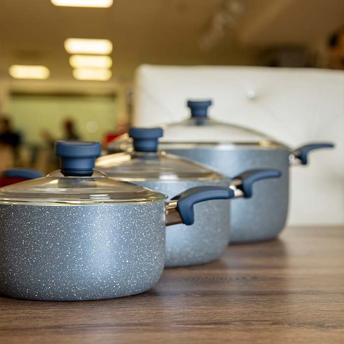 این سرویس مفید شامل دو قابلمه در سایزهای 16 و 20 و همچنین یک عدد تابه تکدسته سایز 24 میباشد . پوشش داخلی و خارجی این سرویس گرانیتی و کاملا نچسب میباشد .