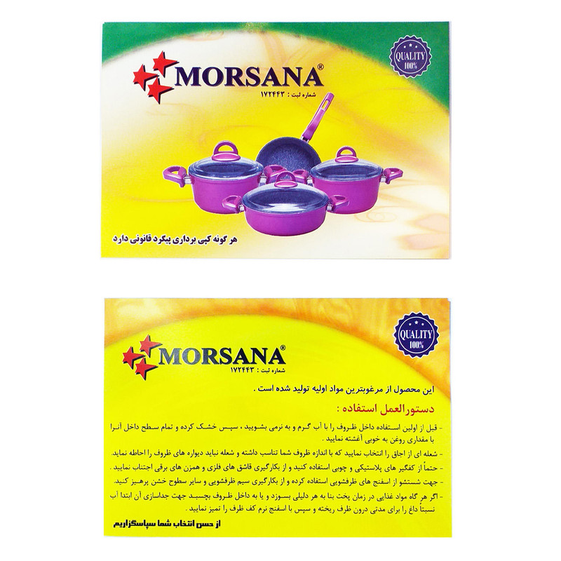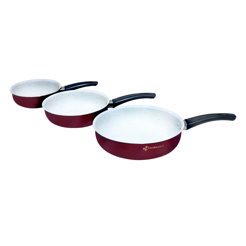سرویس ماهیتابه مُرسانا مدل M855 محصولی ایده آل برای طبخ غذایی سالم است. این محصول ساخته شده از آلومینیوم بوده و روکشی گرانیتی دارد و در رنگهای متنوعی طراحی شده است. سایزهای استاندارد و پرکاربرد 26 سانتیمتر، 22 سانتیمتر و 18 سانتیمتر تابه ها در کنار دوام و عمر طولانی آن، این محصول را به یکی از پرکاربردترین محصولات در آشپزخانه تبدیل کرده است. طراحی دسته از جنس عایق نسوز، حس نرمی و راحتی را به مصرف کننده می دهد. ساخت قسمت لبهء انتهایی این محصول بصورتی میباشد که استقامت کالا را بیشتر کرده و در عین حال شستشوی آنرا نیز راحتتر کرده است .این ست در سایز ها و رنگبندی مختلف می باشد که به راحتی با هر آشپزخانه ای ست شده و آشپزی را برای شما آسان نموده . همچنین شستشوی آن آسان است و با یک اسفنج نرم نیز به راحتی تمیز میشود. سرخ کردن انواع مواد غذایی در این محصول نیازی به روغن فراوان ندارد و با کمترین میزان روغن هم میتوان به غذایی ترد و مغز پخت دست یافت. این ست ماهیتابه دارای یک دستهی مقاوم به حرارت است. با انتخاب ماهی تابه (مُرسانا M855) دنیایی متفاوت در آشپزی را تجربه خواهید کرد.