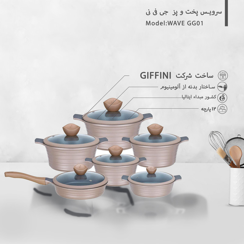 سرویس پخت وپز (قابلمه) محصولی است جدید از کمپانی جی فی نی ،با جدیدترین خطوط تولیدی مجهز به تکنولوژی روز (نانو) با قابلیت ذخیره انرژی تا 30% عرضه شده است. جنس بدنه کلیه سرویسها از 5 لایه ساخته شده و تکنولوژی بکاررفته در قسمت تحتانی این محصولات را از شعله پخش کن بی نیاز میکند. محصولات جی فی نی در بروزترین خطوط تولیدی در کورههای خاص رنگ شده وتا 350 درجه در برابر حرارت مستقیم مقاومت میکنند.