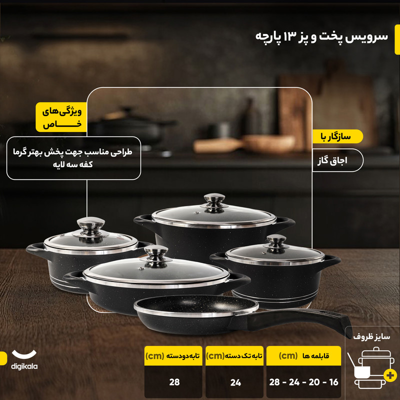 دستهبندی: سرویس پخت و پزاقلام سرویس: قابلمه , تابه , رندهتعداد پارچه: 13 پارچهنوع: سرویس قابلمه و تابه