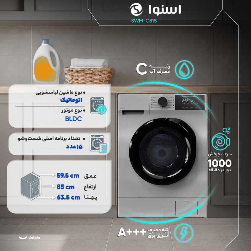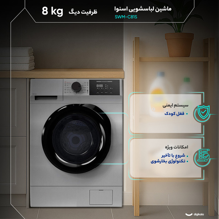 ماشین لباسشویی 8 کیلوگرم اتوماتیک اسنوا مدل SWM-C81S