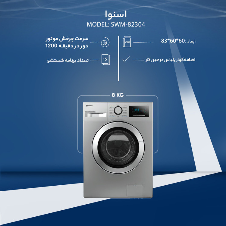 ماشین لباسشویی اسنوا مدل SWM-82304 ظرفیت 8 کیلوگرم