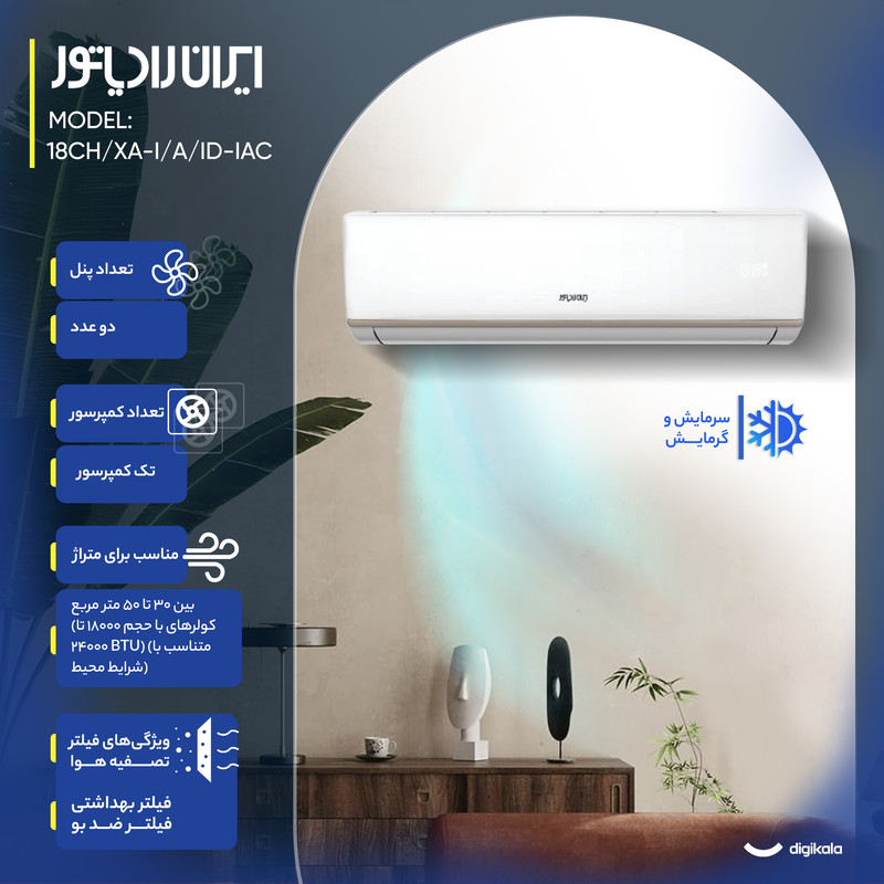 نمایشگر دیجیتال روی ریموت , کنترل کامل تنظیمات دما و فن , تنظیم تایمر از طریق ریموت , قابلیت تنظیم حالت توربو از ریموت , تنظیم جهت پرتاب باد از راه دور , طراحی ارگونومیک و سبک