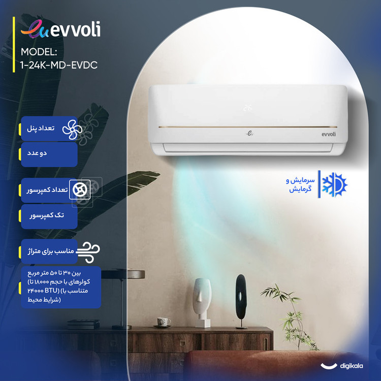نمایشگر دیجیتال روی ریموت , کنترل کامل تنظیمات دما و فن , تنظیم تایمر از طریق ریموت , تنظیم جهت پرتاب باد از راه دور , قابلیت تنظیم حالت توربو از ریموت , طراحی ارگونومیک و سبک