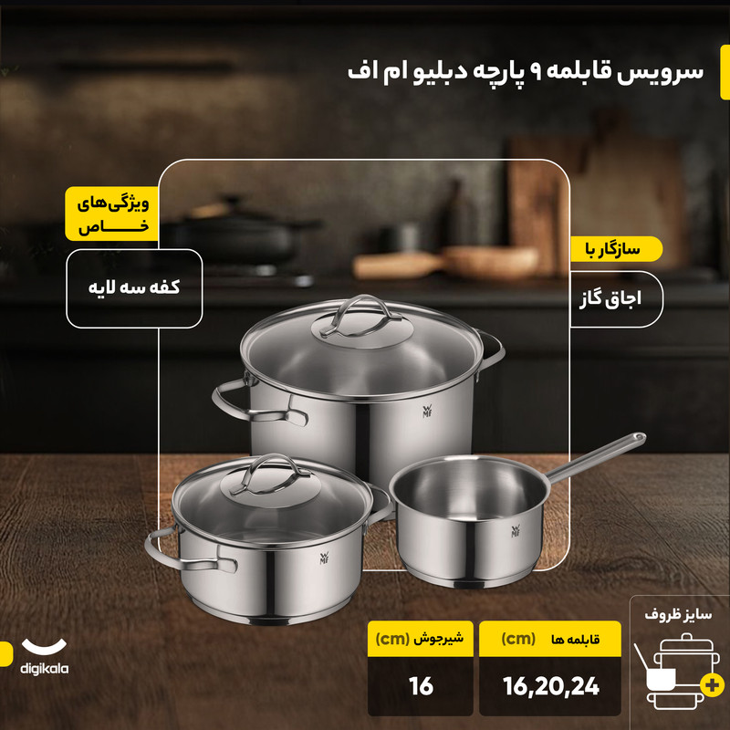 کفه سه لایه این ظروف، حرارت را به صورت بهینه و یکنواخت در تمام سطح پخش میکند که نتیجه آن پختی بینقص و مصرف انرژی کمتر است. این مجموعه ۹ پارچه ساخت کشور آلمان، شامل سه قابلمه در سایزهای کاربردی و یک شیرجوش است که نیازهای اصلی یک آشپزخانه مدرن را به خوبی پوشش میدهد. دستههای استیل این سرویس به صورت پرچ شده به بدنه متصل شدهاند تا ایمنی و استحکام حداکثری را هنگام جابجایی فراهم آورند. این ظروف برای استفاده روی اجاق گاز مناسب هستند. در نهایت، سرویس قابلمه WMF مدل PROVENCE PLUS برای کسانی که به دنبال بهترین کیفیت مواد اولیه و دوامی ماندگار هستند، یک انتخاب حرفهای است.