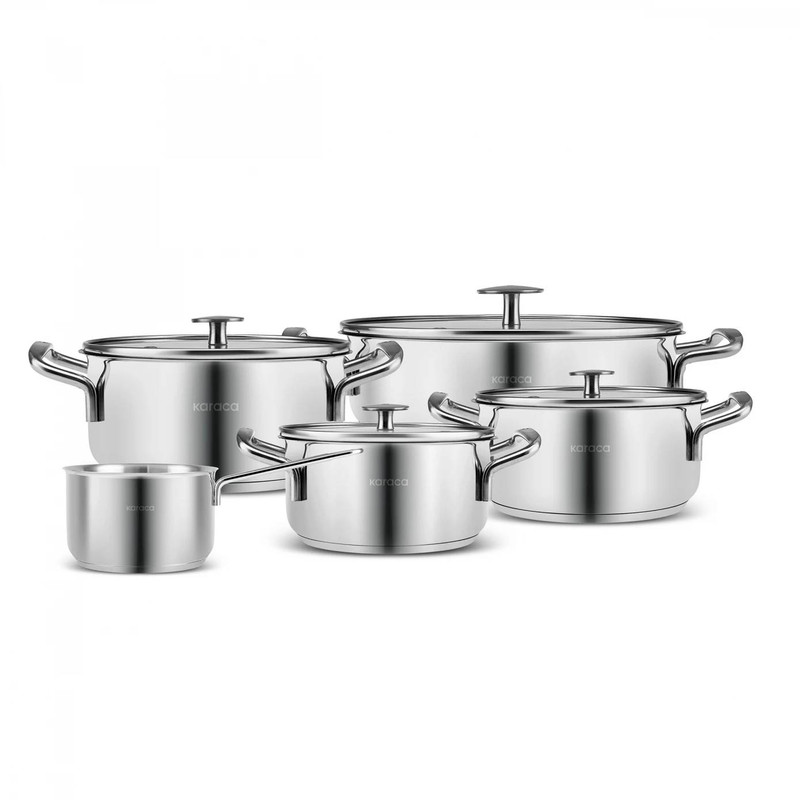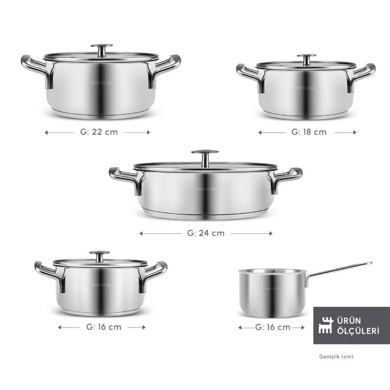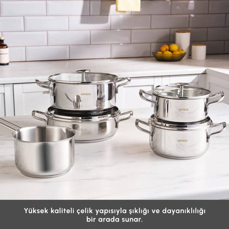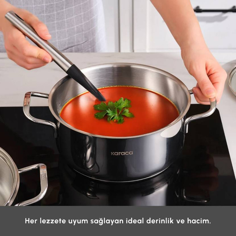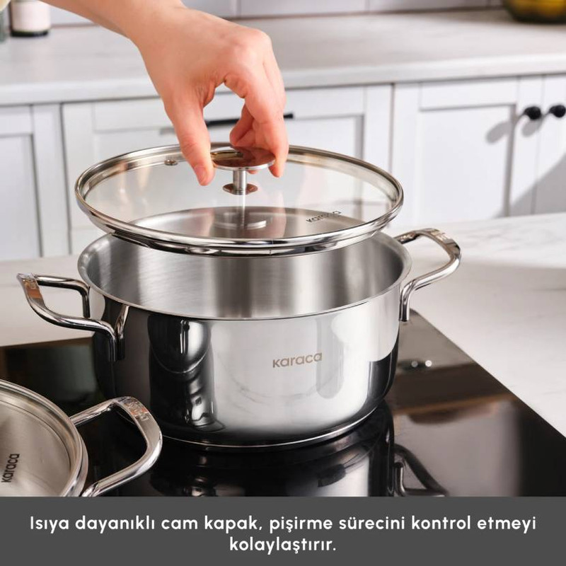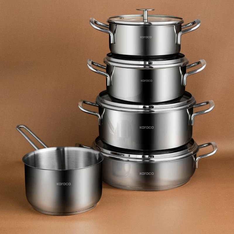 سرویس قابلمه ۹ پارچه کاراجا مدل آریس (Aris)، نمونه درخشان هنر و مهندسی ترک ها در خدمت آشپزخانههای مدرن شماست! این مجموعه استثنایی که با افتخار **در ترکیه طراحی و تولید شده**، از **مرغوبترین استیل ضد زنگ ۱۸/۱۰** ساخته شده تا همچنان که سلامت مواد غذایی را در طول پخت حفظ میکند، برای سالها ماندگاری و درخشش خود را حفظ کند. طراحی پایه **اینداکشن** این سرویس، حرارتی یکنواخت و سریع را روی **تمامی اجاقها (القایی، گاز، برقی و سرامیکی)** فراهم میکند و باعث پخت کامل و خوشطعم هر نوع غذایی میشود. مجموعه کامل آن شامل قابلمههای ۱۶، ۱۸، ۲۲ و یک نیمقابلمه ۲۴ سانتیمتری به همراه یک شیرجوش، پاسخگوی تمامی نیازهای آشپزی روزانه شماست. **دستههای تمام استیلِ ارگونومیک** آن، استفاده بیخطر و راحتی را حتی در دمای بالا ممکن ساخته و **دربهای شیشهای** آن، نظارت بر غذا را بدون هدررفت حرارت ممکن میسازد. به لطف سطح صیقلی و بدون منفذ، **شستن آن بسیار آسان** است و با اطمینان میتوان آن را در **ماشین ظرفشویی** شست. با انتخاب سرویس کاراجا آریس، شما نه تنها یک مجموعه قابلمه، بلکه **گواهی اصالت، کیفیت و نوآوری ترکیه ای** را به آشپزخانه خود آوردهاید.