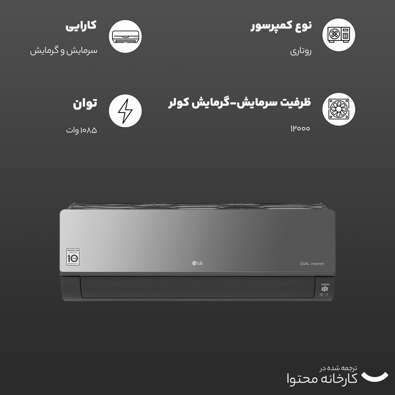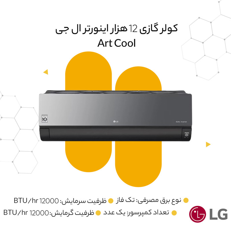 کولر گازی 12هزار اینورتر ال جی سری Art Cool مدل S4NW12JARPD.EC6GLVT