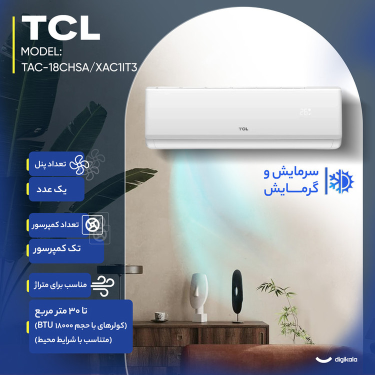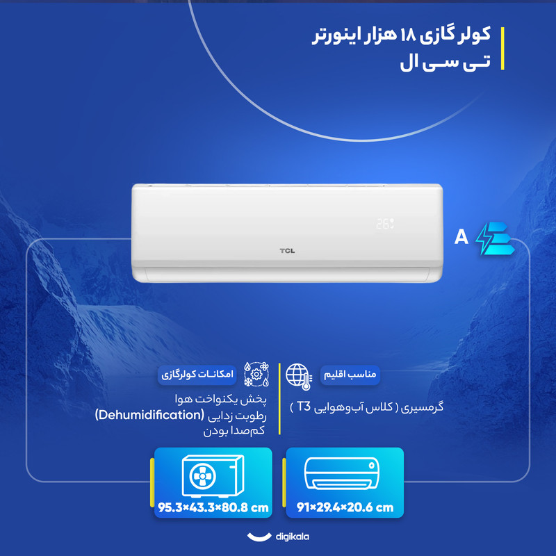 نمایشگر دیجیتال روی ریموت , کنترل کامل تنظیمات دما و فن , تنظیم جهت پرتاب باد از راه دور , قابلیت تنظیم حالت توربو از ریموت