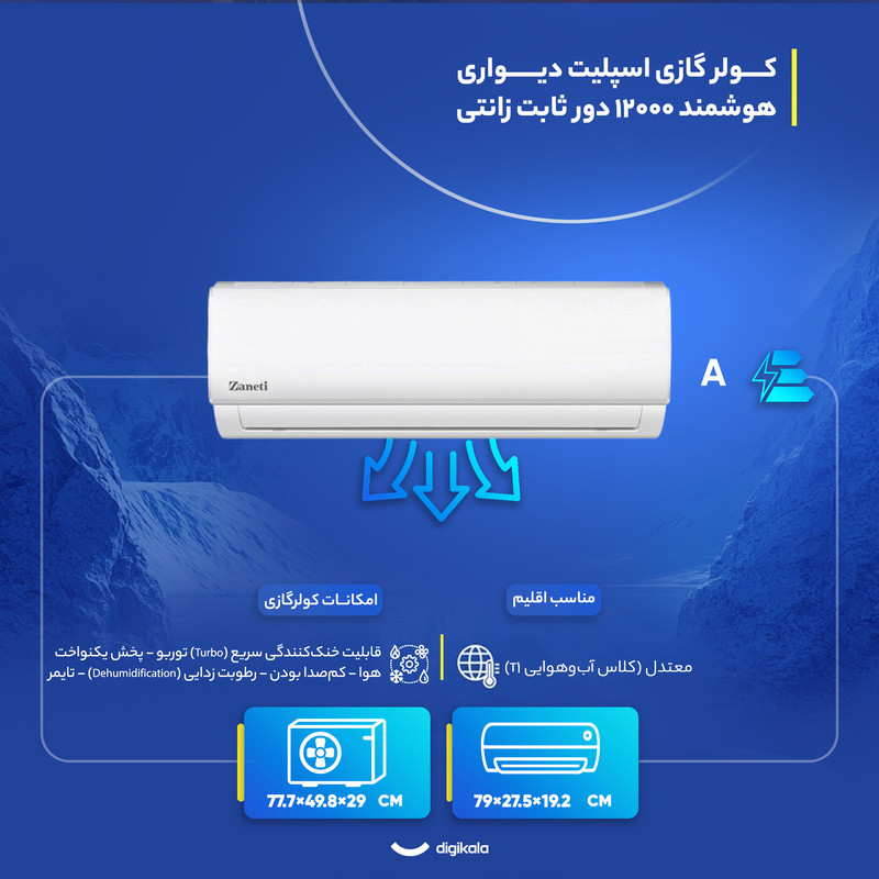 نمایشگر دیجیتال روی ریموت , کنترل کامل تنظیمات دما و فن , تنظیم تایمر از طریق ریموت , تنظیم جهت پرتاب باد از راه دور , قابلیت تنظیم حالت توربو از ریموت , طراحی ارگونومیک و سبک