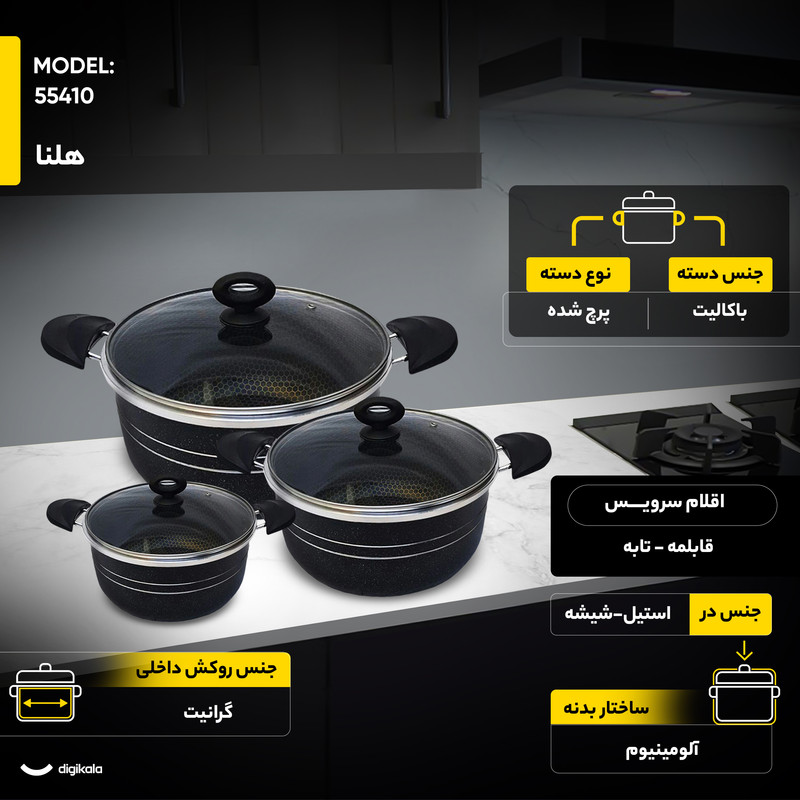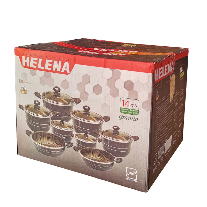 سرویس پخت و پز 14 پارچه هلنا طرح چدن مدل 55410