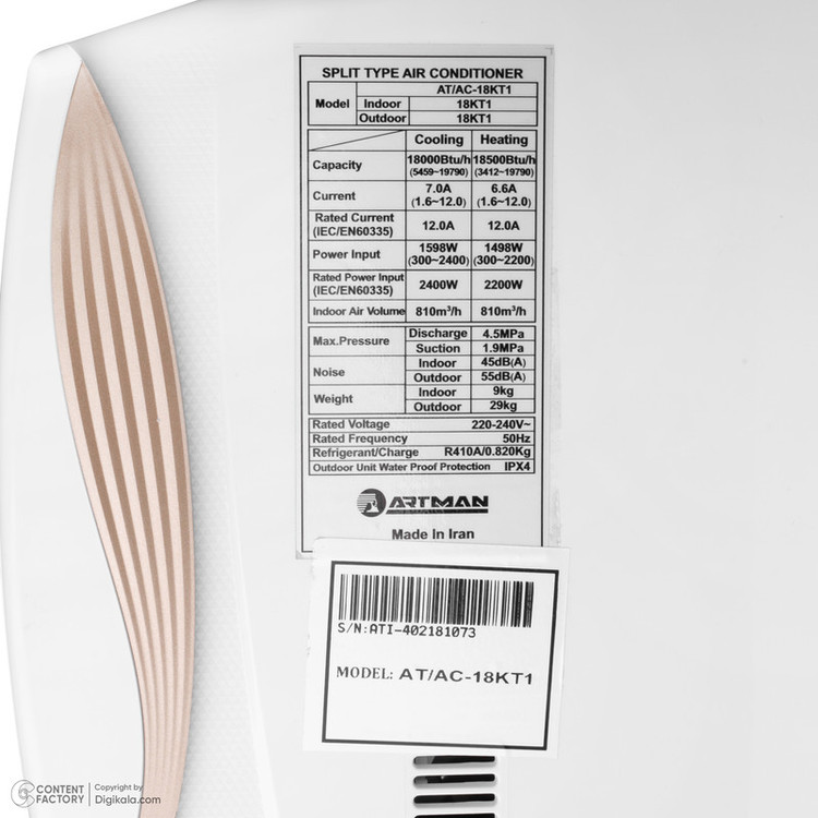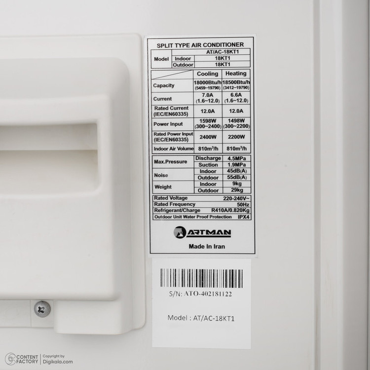 کولر گازی 18 هزار اینورتر آرتمن مدل AT/AC-18KT1