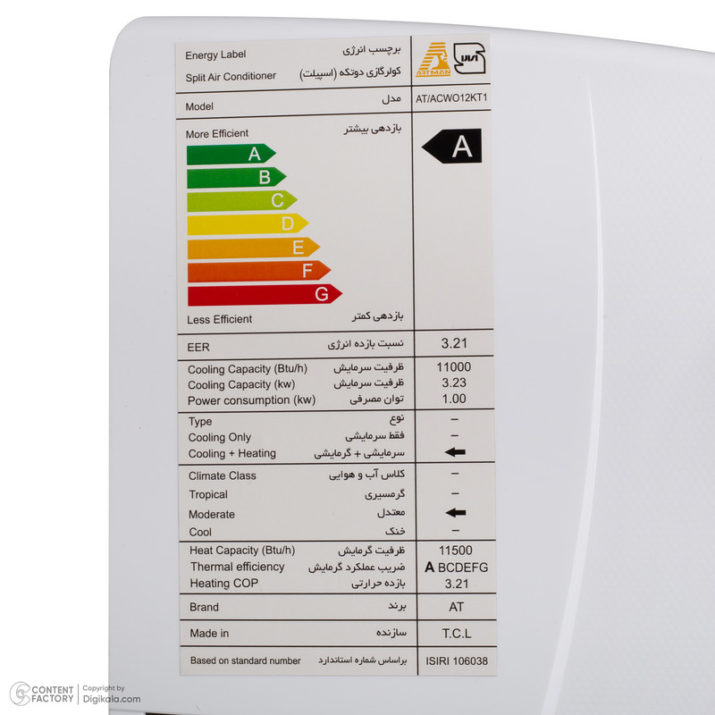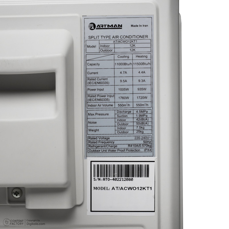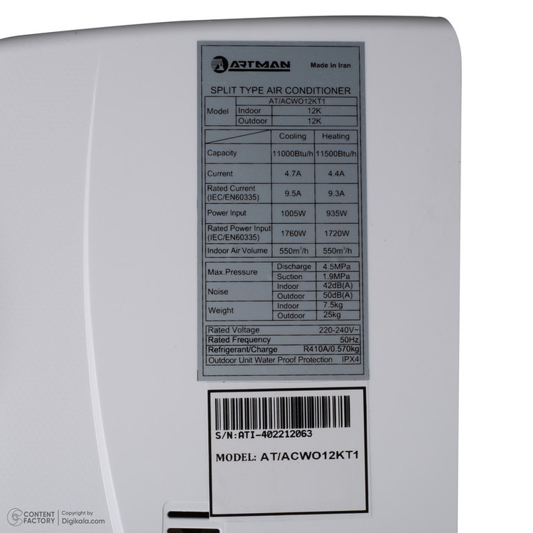 نوع گاز (مبرد): R410A