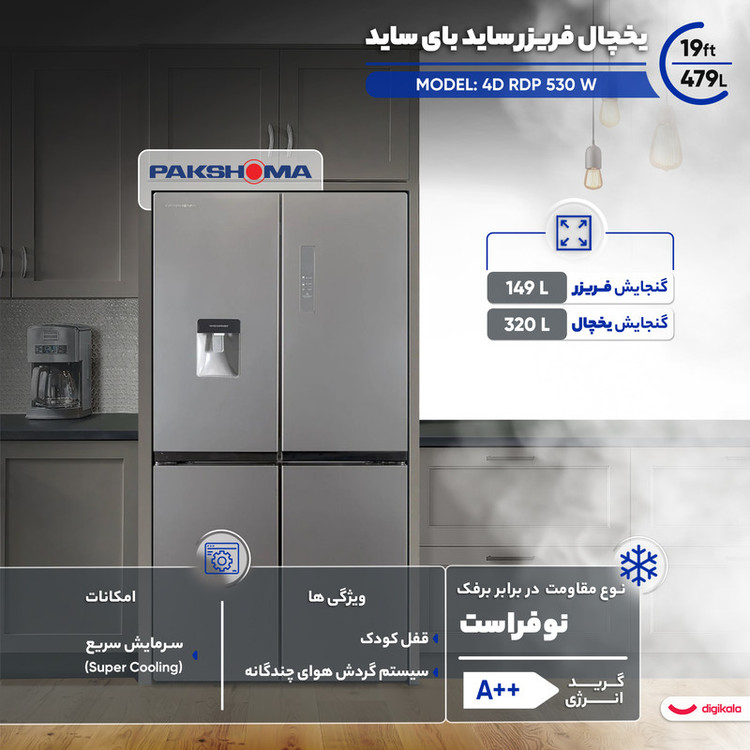 نوع یخچال فریزر: ساید بای ساید