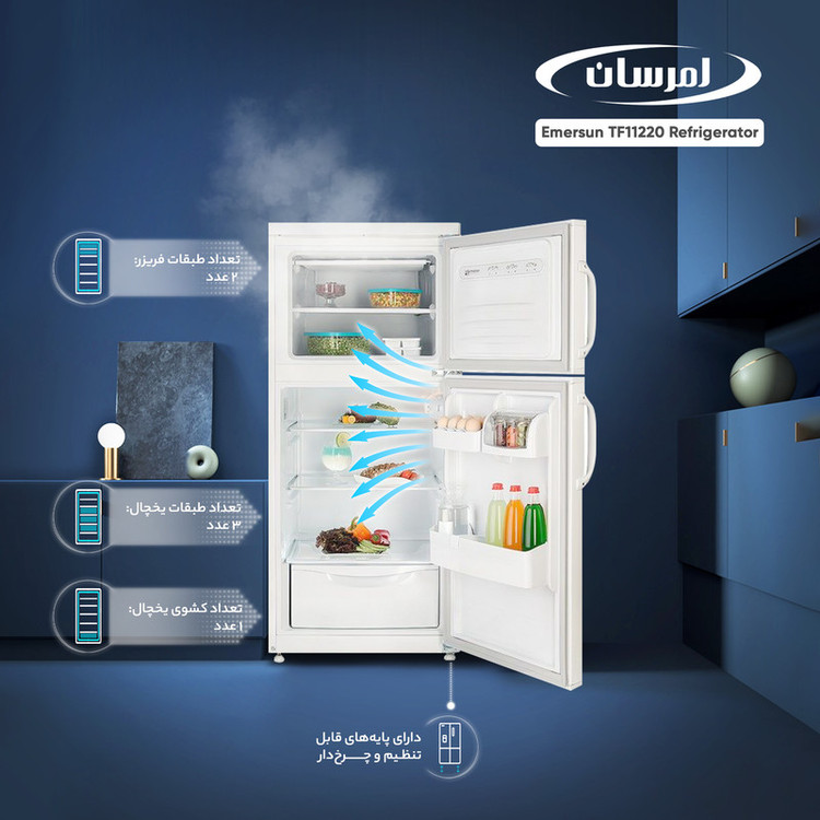 - کنترلر مکانیکی - محفظه نگهداری مواد غذایی منجمد - طبقات شیشه ای نشکن - جنس بدنه ورق فولادی - طبقه بندی رنگی ساده - جا لبنیاتی و بطری - کشوی میوه و سبزیجات تازه - پایه های قابل تنظیم و چرخ دار