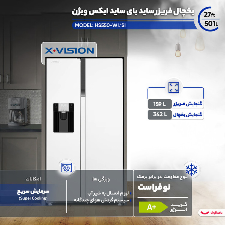 نوع یخچال فریزر: ساید بای ساید
