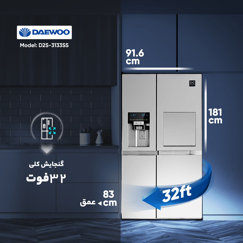 یخچال و فریزر ساید بای ساید 32 فوت دوو مدل D2S-3133SS