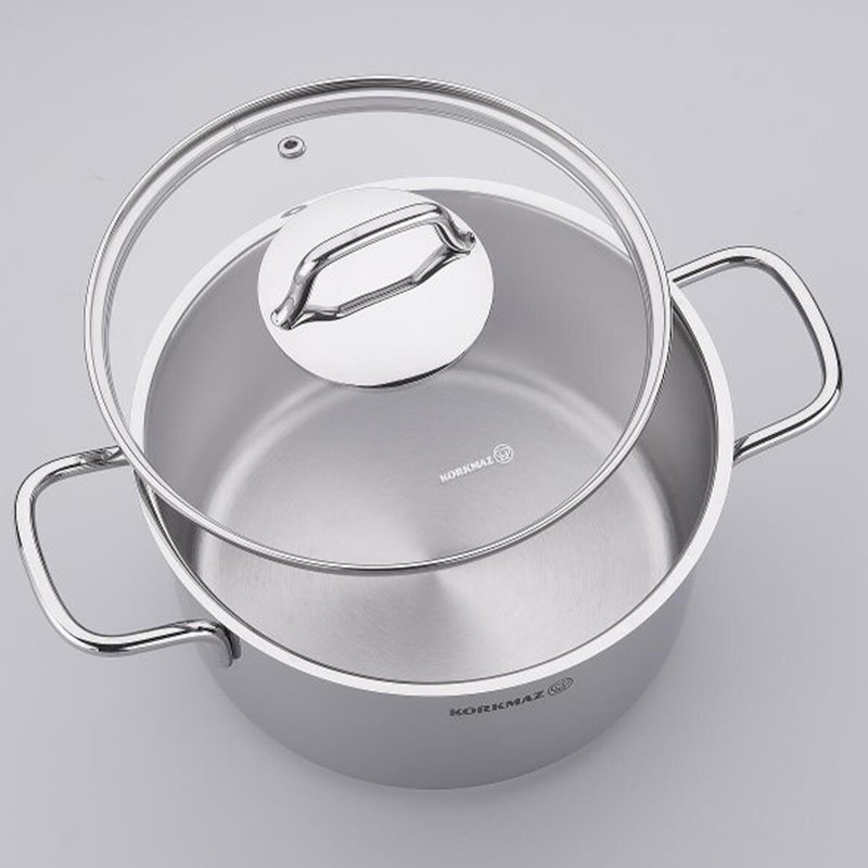 هر سه قابلمه و یکی از تابهها دربدار بوده و دربها آنها از شیشه مقاوم در برابر حرارت تولید شده است. دستگیرههای سرویس قابلمه Korkmaz Perla A1609 از جنس استیل ضد زنگ بوده و در برابر گرما مقاوم میباشند. طراحی ارگونومیک دستگیرهها و اتصال محکم آنها به بدنه موجب استفاده راحت و ایمن از آنها شده است. کف قابلمهها به صورت کپسول سه لایه ساخته شده که باعث توزیع یکنواخت گرما و همچنین بالاترین نرخ انتقال گرما در انواع اجاقها از جمله اجاقهای برقی میشود. سرویس قابلمه پرلا کرکماز به واسطه دربهای تختی که دارد به راحتی در داخل ماشین ظرفشویی قابل چیدن بوده و شستشو داده خواهد شد.