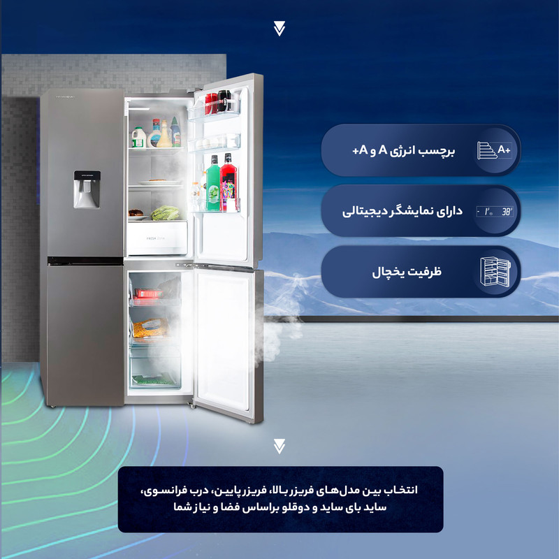 سیستم گردش هوای چند گانه دارای دو کشو مجزا جهت تازه نگه داشتن میوه و سبزیجات سیستم انجماد سریع فریزر سیستم خنک کنندگی سریع یخچال سیستم اکونومی جهت استفاده در هنگام مسافرت