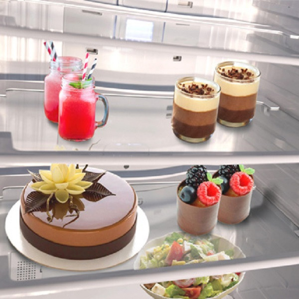 طبقات شیشه ای مقاوم توان نگهداری ظروف سنگین غذا را داشته، از طرفی به دلیل ساختار ویژه، نگرانی شما را بابت پاکیزگی و نظافت یخچال از بین می برد.