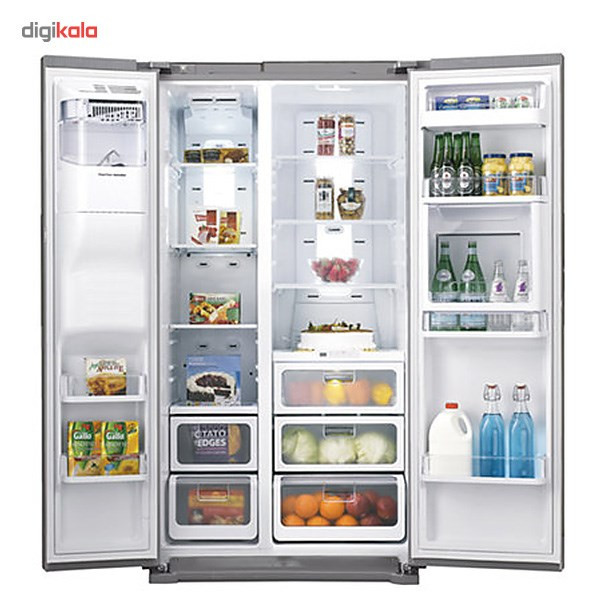 یخچالفریزر سامسونگ HM24 از یخچالفریزرهای سایدبایساید شرکت سامسونگ (Samsung) است که از طراحی زیبا، امکانات مدرن، و ظرفیت مناسبی برخوردار است. بهعنوان یکی از موارد مربوط به طراحی مدرن این مدل میتوان به دستگیرههای هوشمند و زیبای آن اشاره نمود که نهتنها بهصورت توکار است و برای کودکان بازیگوش دردسرآفرین نمیشود، بلکه بهگونهای طراحی شده که بهراحتی با یک انگشت هم باز میشود. قابلیت مدرن این یخچال که با عنوان CoolSelect Zone™ یا محفظه یخچال در یخچال شناختهشده است این امکان را میسر میسازد تا ضمن نگهداری مواد غذایی دلخواه در آن یکی از حالات سرمایش تعریف شده و متناسب با آن ماده را انتخاب کنید. این یخچالفریزر از کمپرسور اینورتر دیجیتال سامسونگ برخوردار است که نهتنها نسبت به مدلهای قدیمیتر دارای طول عمری بهمراتب بیشتر است بلکه تولید صدایی کمتر و مصرف انرژی بسیار پایینتری دارد. این مدل مجهز به آبسردکن و یخساز با طراحی زیبایی روی درب فریزر است که برای استفاده آسانتر از اهرم داخلی برخوردارند و امکان برداشتن آب سرد حتی با یک دست را نیز برای کاربر میسر میسازد. این قسمت با طراحی زیبا ظرفیت کافی برای قرارگیری آسان دو لیوان بلند و بزرگ زیر یخساز و آبسردکن را مهیا میسازد و در قسمت بالایی آن صفحه نمایشگری زیبا تعبیهشده که از طریق آن میتوان به بررسی درجه دما و همچنین اعمال تنظیمات مربوطه پرداخت. یخچالفریزر سامسونگ HM24 همچنین به سیستم Twin Cooling System یا خنککننده دوگانه و مجزا مجهز است و با تنظیم بهینه درجه دما رطوبت را به میزان لازم نگه میدارد تا در هر دو بخش فریزر و یخچال شاهد عملکردی با بهترین کیفیت باشید. در کنار این سیستم، فیلتر بوگیر دستگاه نیز به کیفیت عملکرد دستگاه کمک کرده تا علاوه بر نگهداری طولانیمدت انواع اغذیه، میوهجات، بستنی، و دیگر مواد، دیگر نگران نگهداری موادی چون نان سیر و ماهی نیز نباشید. بر روی درب یخچال نیز قسمت بار تعبیهشده که میتوان بطری آب یا نوشیدنی موردعلاقه یا پرمصرف را در محفظه پشت آن نگهداری نمود و بهراحتی با باز کردن درب کوچک و بدون نیاز به باز کردن درب اصلی و اتلاف انرژی نوشیدنی خنکی را سرو و نوش جان کنید.