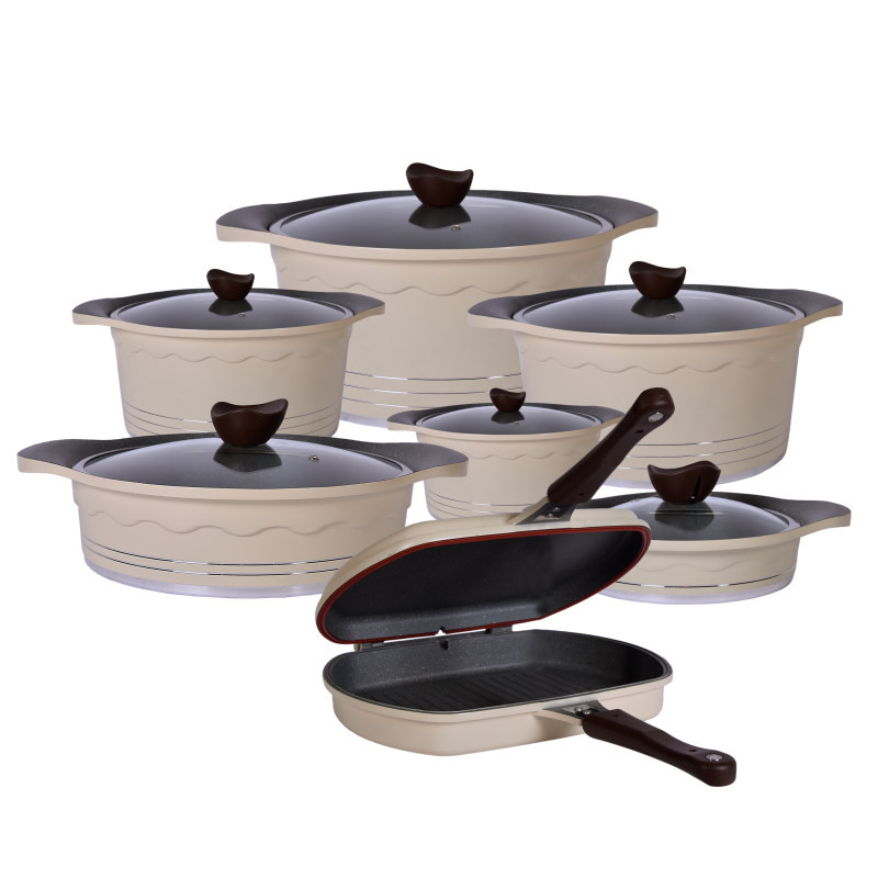 سرویس پخت وپز 14 پارچه راکلند تولید داخل می باشد. -قابلیت شست شو در ماشین ظرفشویی دارد. -قالب خاص و منحصر به فرد دارای لبه روغن ریز شامل: قابلمه سایز 32 سانتی متر قابلمه سایز 28 سانتی متر قابلمه سایز 24 سانتی متر قابلمه سایز 20 سانتی متر تابه سایز 28 سانتی متر تابه سایز 20 سانتی متر تابه دوبل یا رژیمی