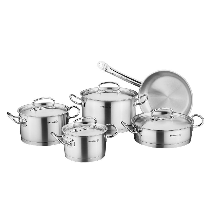 سرویس قابلمه Korkmaz Proline از جنس استیل ضد زنگ 18/10 (کروم-نیکل) بوده که این نوع استیل به دلیل وجود 18 درصد کروم و 10 درصد نیکل، بسیار با کیفیت و محکم خواهد بود. کف قابلمهها و تابه دربدار به صورت سوپر کپسولی و با ضخامت 8 میلیمتر ساخته شده است. سطوح آلومینیومی مخصوص برش خورده روی پایه کپسولی هدایت گرما را بهتر کرده و در نتیجه در زمان و انرژی شما صرفه جویی خواهد شد.