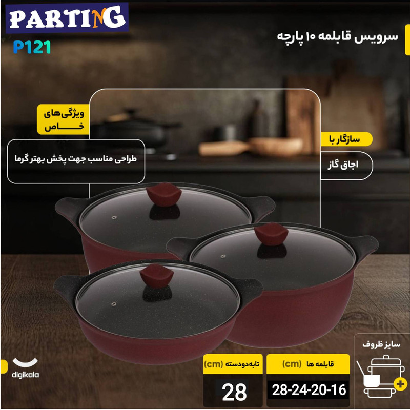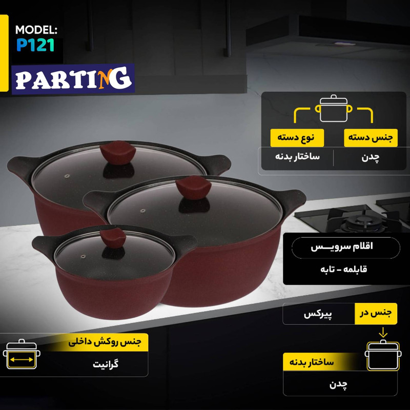 سرویس قابلمه و تابه چدنی 10 پارچه پارتینگ مدل NANO