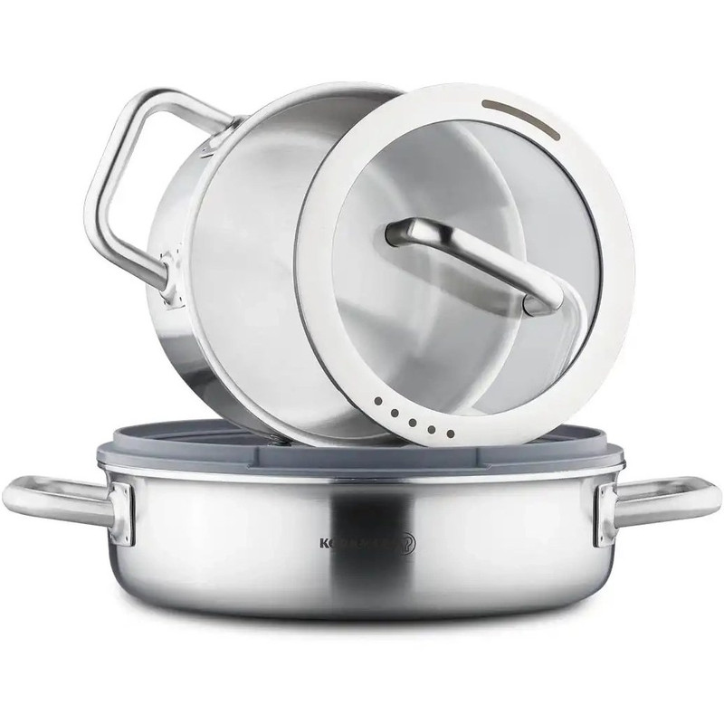 کفه های سرویس قابلمه A2794 ضخیم و دارای ساختار لایه ای می باشد.این باعث می شود حرارت به صورت یکسان پخش شود و از ته گرفته غذا جلوگیری کنداین سرویس قابلمه را می توان بر روی انواع اجاق های برقی ، القایی و گازی نیز مورد استفاده قرار دهید