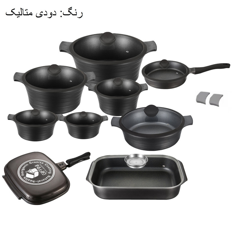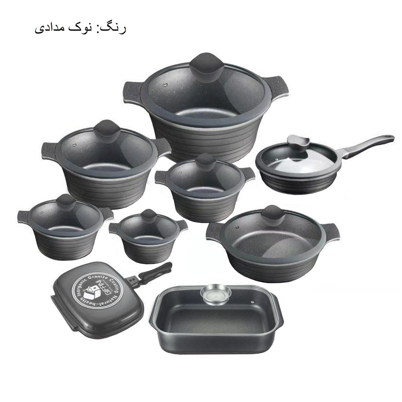 سرویس پخت وپز (قابلمه) گرانیت، محصولی است جدید از کمپانی جی فی نی ،با جدیدترین خطوط تولیدی مجهز به تکنولوژی روز (نانو) با قابلیت ذخیره انرژی تا 30% عرضه شده است. جنس بدنه کلیه سرویس ها از 5 لایه گرانیت ساخته شده و تکنولوژی بکاررفته در قسمت تحتانی این محصولات را از شعله پخش کن بی نیاز میکند. محصولات جی فی نی در بروزترین خطوط تولیدی در کوره های خاص رنگ شده وتا 350 درجه در برابر حرارت مستقیم مقاومت میکنند. جنس دستگیره این سرویس با جنس بکاررفته در بدنه (چدن) همسان بوده ودرنتیجه هرگز دستگیره ها آسیب نمیبینند. ادغام جنس دستگیره با بدنه علاوه بر محافظت آن دربرابر حرارت مستقیم موجب ظهور طرحی زیبا و منحصر بفرد شده است.دسته ماهی تابه ها نیز از این قاعده مستثنی نبوده وعلاوه بر موارد فوق قابلیت جداشدن را نیز دارد. مواد تشکیل دهنده لایه درونی با تکنولوژی نانو گرانیت با فرمول گیاهی ساخته شده و ترکیبات آن غیر قابل ترکیب با مواد غذایی بوده و این محصول را جهت پخت و پز سالمتر ارائه میکند. درب بکاررفته در محصولات فوق با استاندارد ترین شکل ممکن ساخته شده تا بهترین کارایی را ارائه نماید و جنس بکار رفته درآن شامل سیلیون اصل و شیشه محدب آبدیده با قابلیت تحمل حرارت بالا ساخته شده است.
