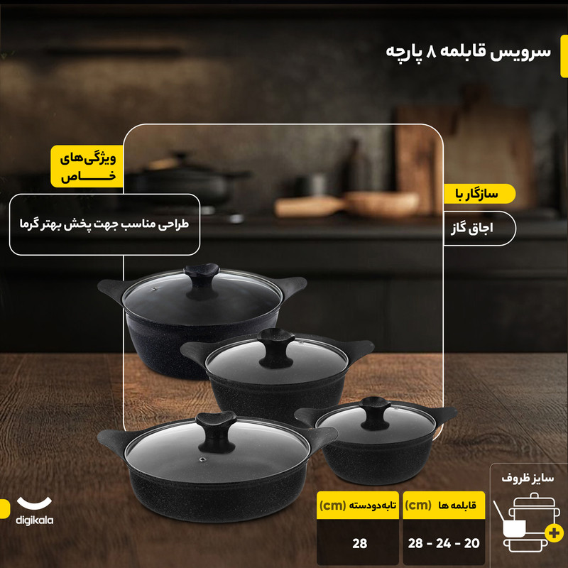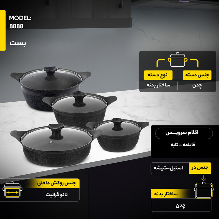 سرویس قابلمه 8 پارچه بست مدل 8888