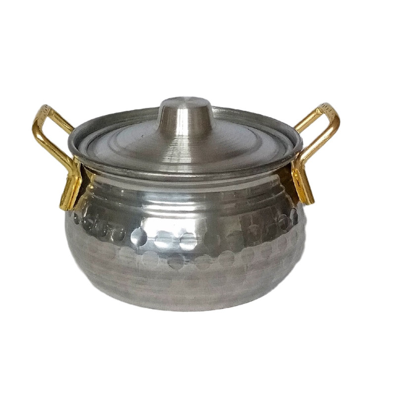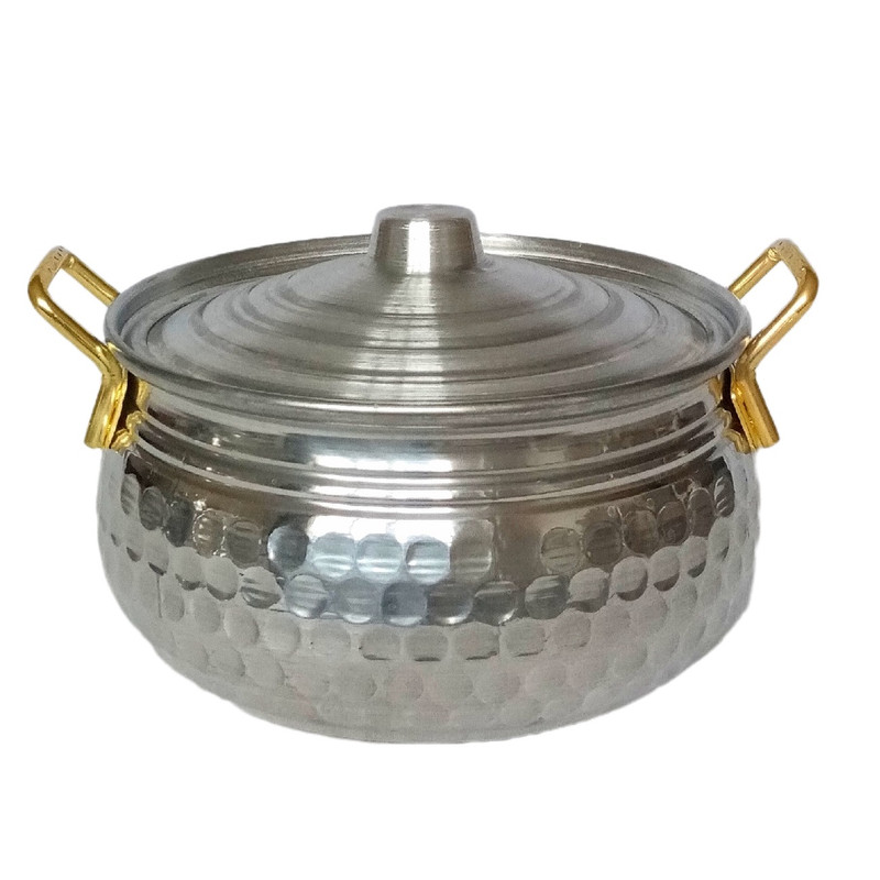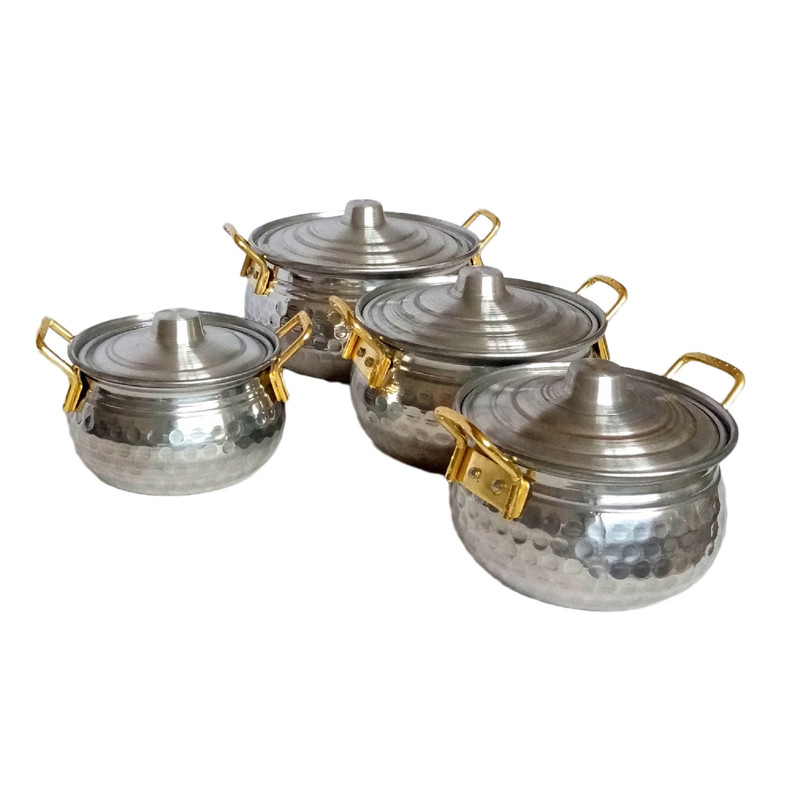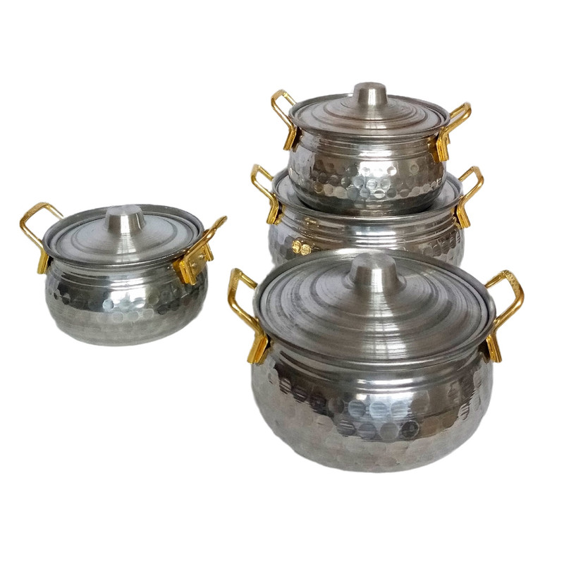 سرویس قابلمه 8 پارچه مدل چکشی از معدود قابلمه های می باشد که دارای بدنه ای به طرح چکش کاری شده است و این بدنه زیبا شما را به عمق خاطرات فرو می برد همچنین جهت سهولت در جا به جای آن دو طرف قابلمه ها دستگیره ای به طرح چکشی تعبیه شده است که این دستگیره ها با یک لایه کروم آبکاری شده اند که علاوه بر زیبایی محصول باعث مقاومت دسته ها می شود.